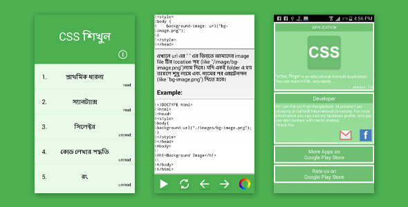 "Learn CSS" is a very simple application where you can enhance your CSS knowledge and also you can run your CSS code.In this application you will find a list of tutorials, symbol, tag and a editor.