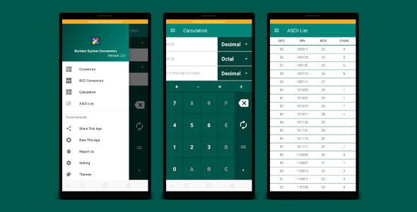 "Number System Conversion" is a converter which allows you to convert between different numeral systems like the binary system, hexadecimal system, octal number system and decimal system.